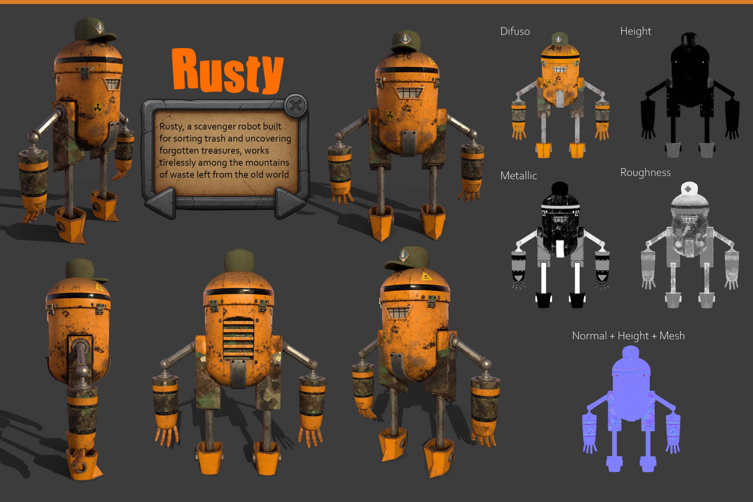Personaje 3D desarrollado a partir de un concept art, reinterpretando formas, colores y detalles para convertir una idea ilustrada en un modelo tridimensional tangible. El objetivo del proyecto fue capturar la esencia y el carisma del diseño original, aportando volumen, materiales envejecidos y pequeños detalles que refuerzan su identidad y su historia.