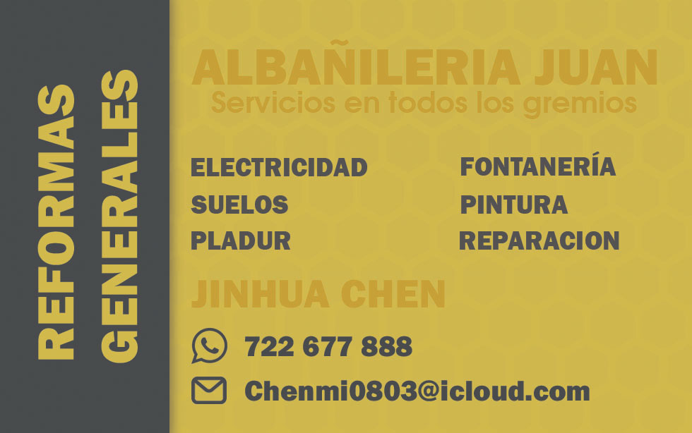 Diseño y presentación visual de tarjeta de presentación profesional para empresa de reformas y servicios generales. El proyecto muestra ambas caras de la tarjeta en un entorno realista, manteniendo proporciones originales y reforzando la identidad visual de la marca para su uso comercial y promocional.