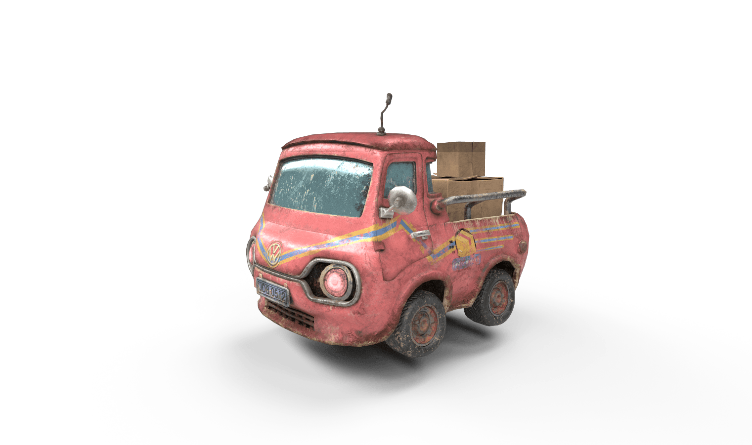 Ejercicio de texturización sobre un modelo de vehículo proporcionado.